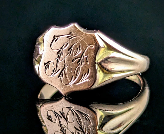 Antique 9ct rose gold signet ring, Shield shaped, Monogrammed