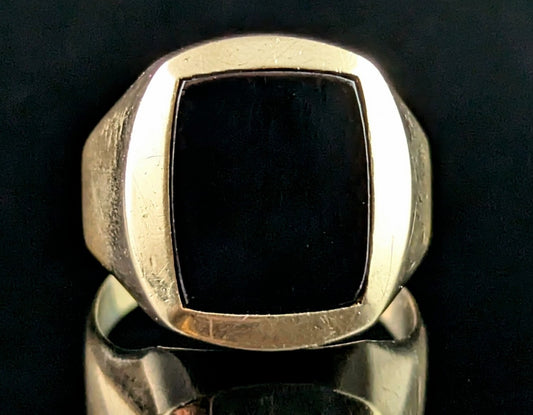Vintage 9ct yellow gold and Onyx signet ring, Chunky, oversized