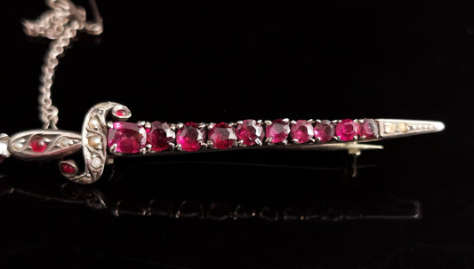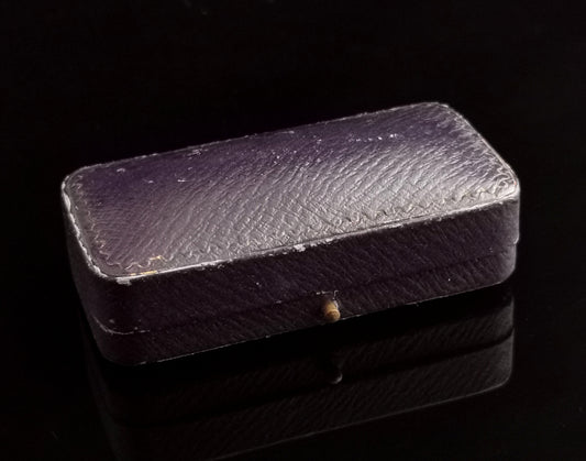 Antique Amethyst Crowned hearts brooch, 9ct gold, Seed pearl, Boxed