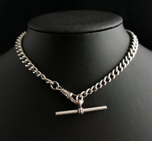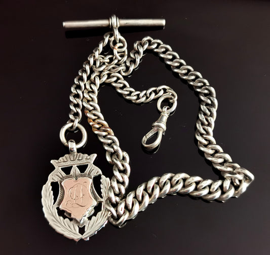 Antique Victorian silver Albert chain, watch chain, Fob