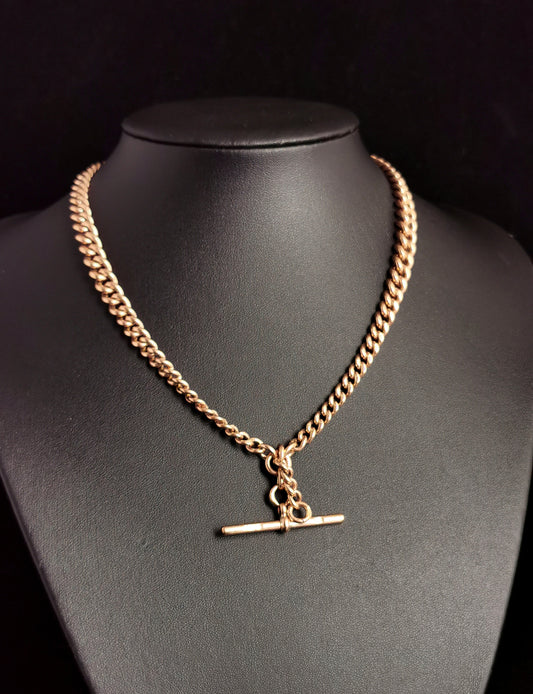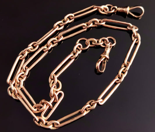 Antique 9ct Rose gold Albert chain, watch chain necklace, Edwardian