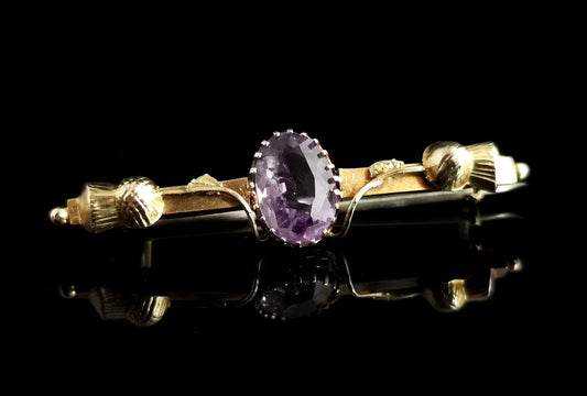 Antique Scottish thistle brooch, Amethyst and 9ct gold