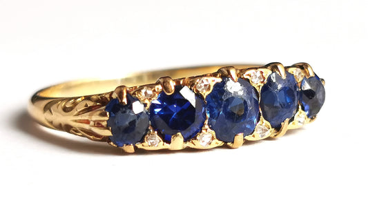 Antique Sapphire and diamond five stone ring, 18ct gold, Victorian