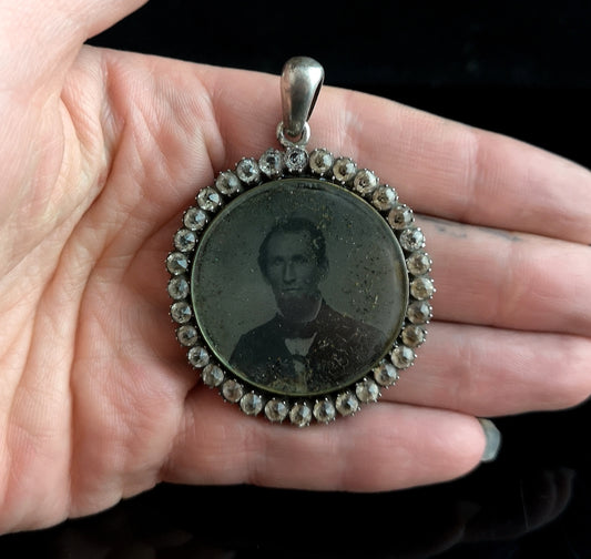 Antique Victorian mourning pendant, silver and paste