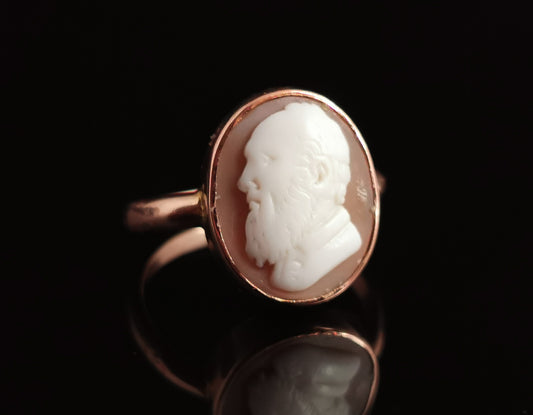 Antique Cameo ring, Gentleman portrait, Edwardian, 9ct gold