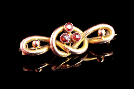 Antique garnet Shamrock brooch, 9ct gold, Lovers knot