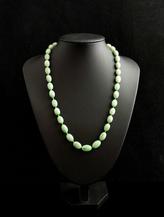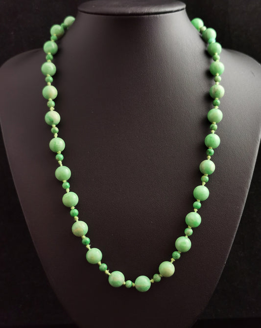 Vintage Art Deco Jade bead necklace, 9ct gold clasp